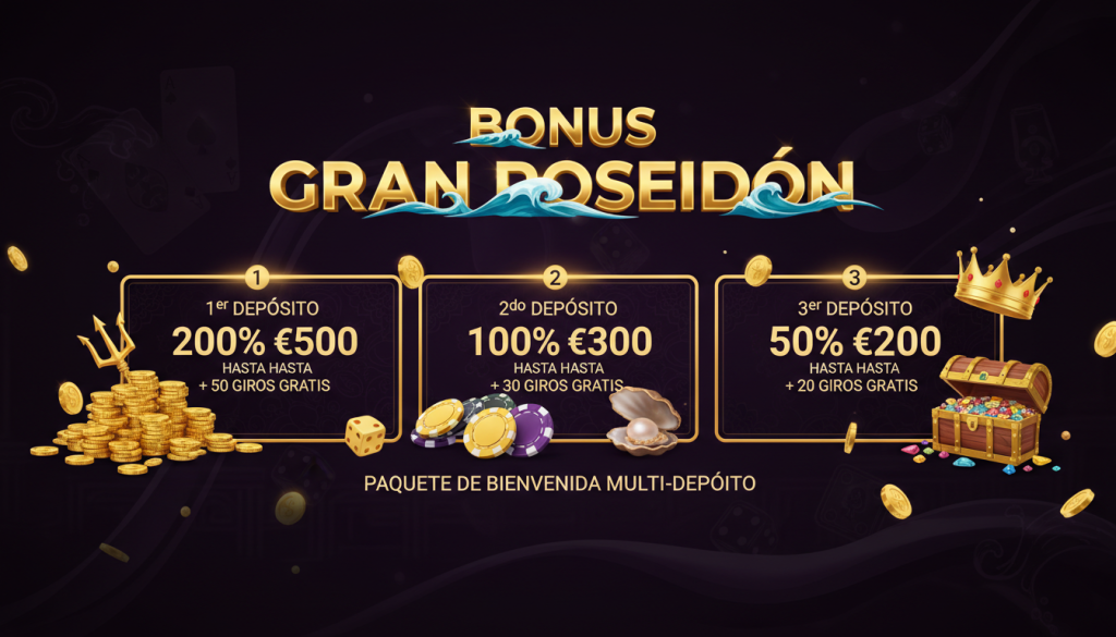 El bono de bienvenida de Gran Poseidon Casino suele ser un paquete de varios depósitos, no solo el primero, lo que permite maximizar el saldo bonificado durante tus primeras sesiones.
